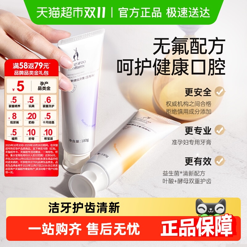 【双11开卖】袋鼠妈妈准孕妇牙膏清新口气专用家庭无氟口腔护理