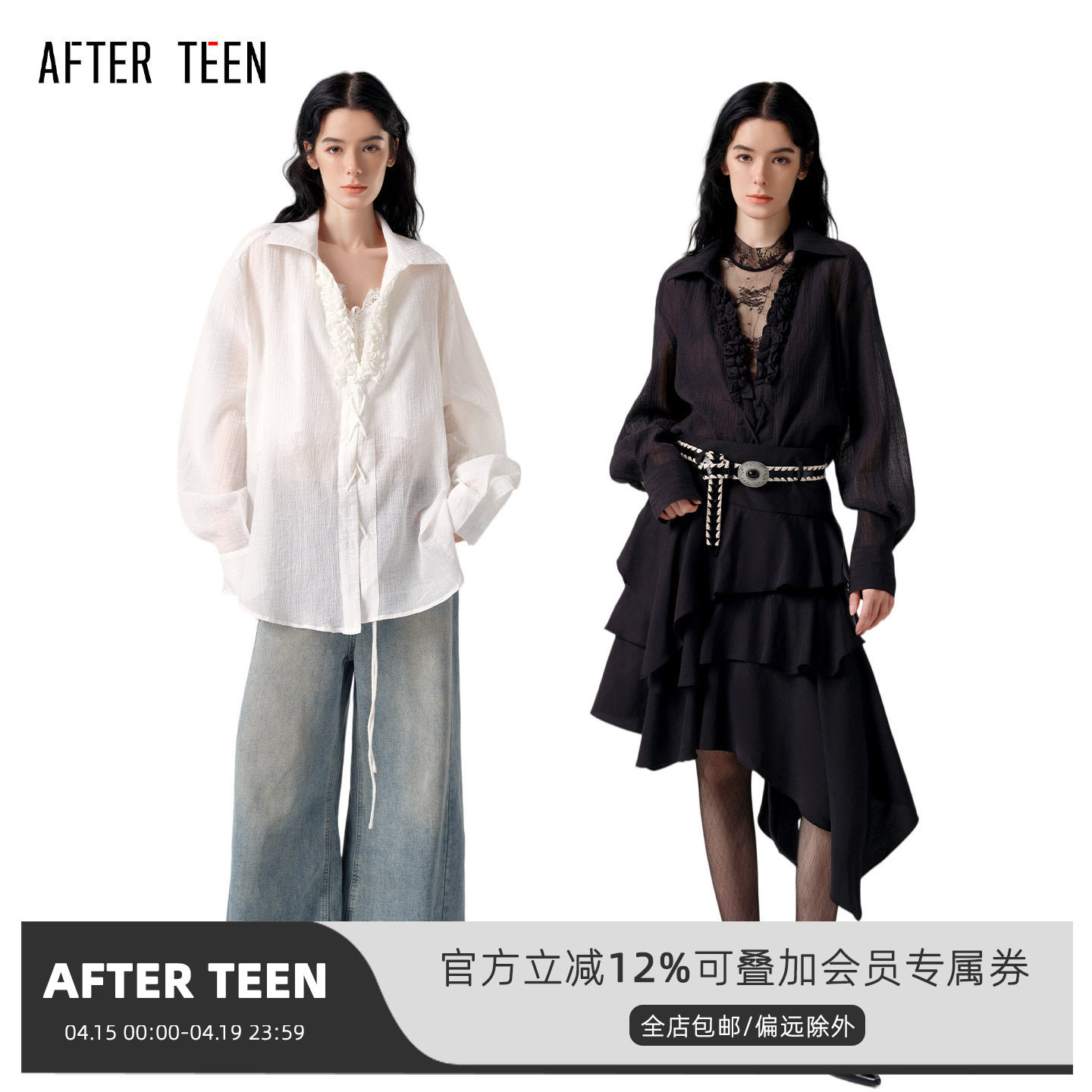 AFTER TEEN 手工花朵装饰绑带衬衫 蕾丝收腰吊带 半身裙
