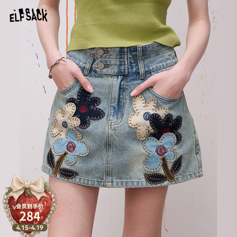妖精的口袋贴布刺绣复古水洗牛仔半身裙女2026春夏新款裙裤短裙子