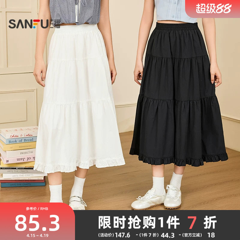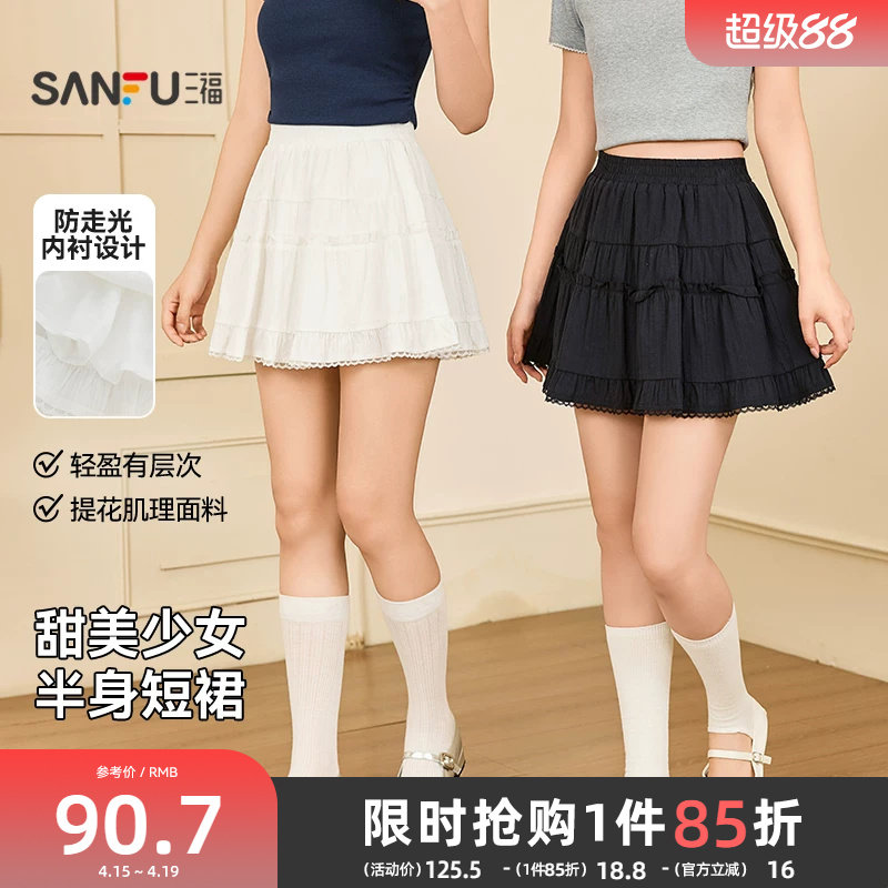 三福白色半身裙2026新款夏季蕾丝花边甜美蛋糕裙小个子短裙子女装