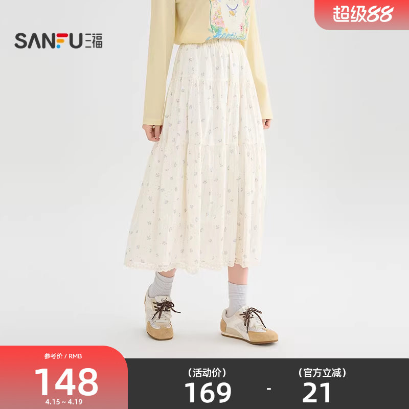三福半身裙2026新款春季巨好看的蕾丝花边满版碎花裙子女装519099