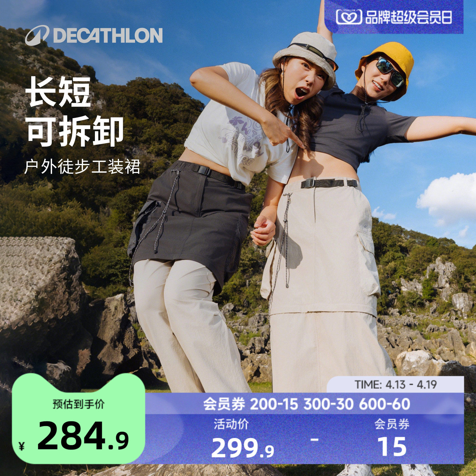迪卡侬户外徒步休闲女款NH900工装裙运动半身裙可拆卸长裙ODT1