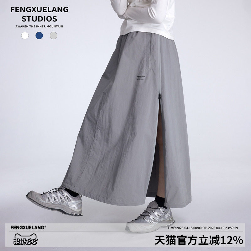 明星同款FENGXUELANGa字休闲半身裙女运动双拉链长裙降落伞裙