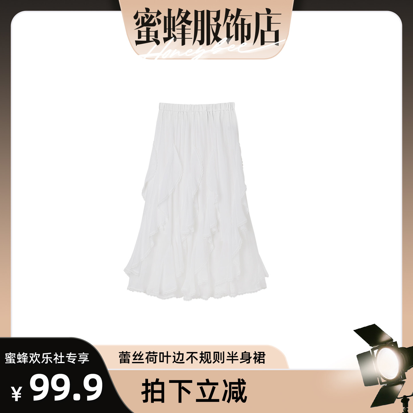 【蜜蜂欢乐社】蕾丝荷叶边不规则温柔仙女半身裙 81001-260052