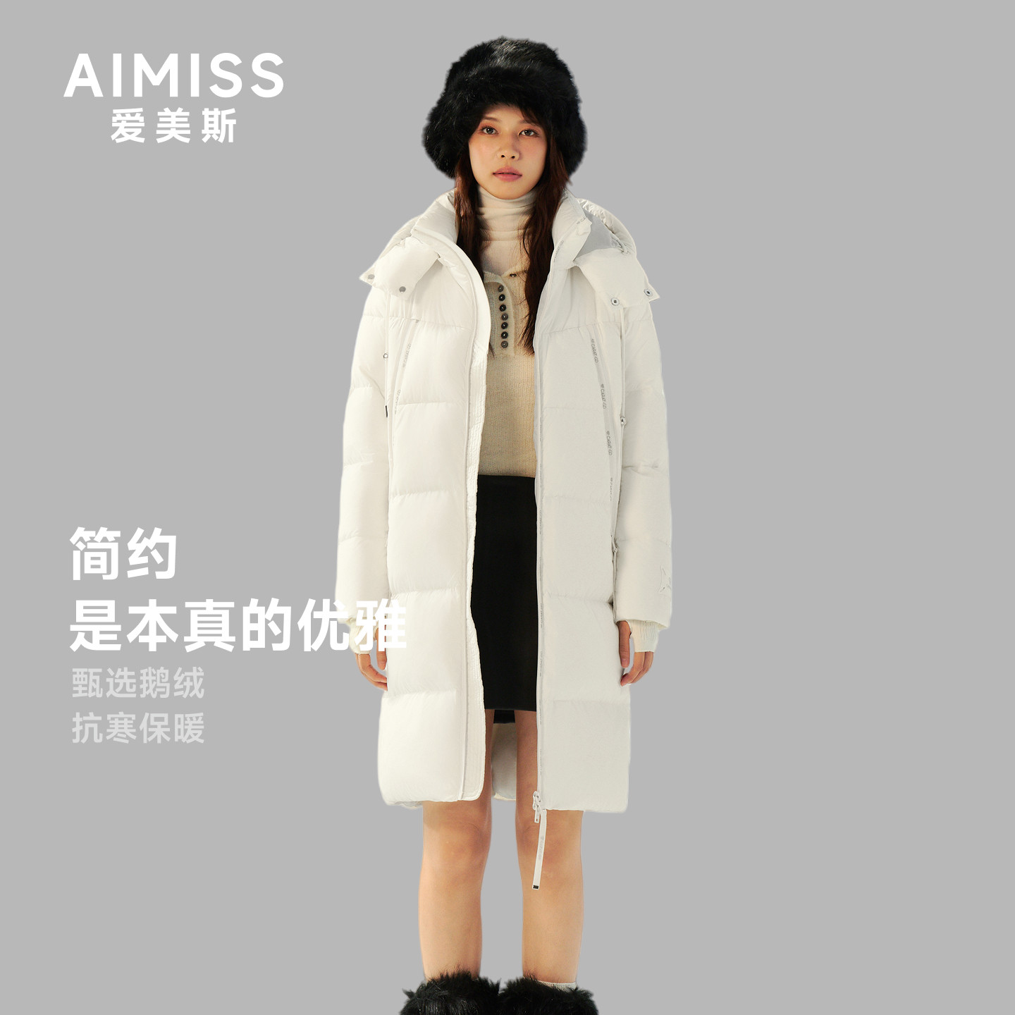 - 潮牌羽绒服女中长款