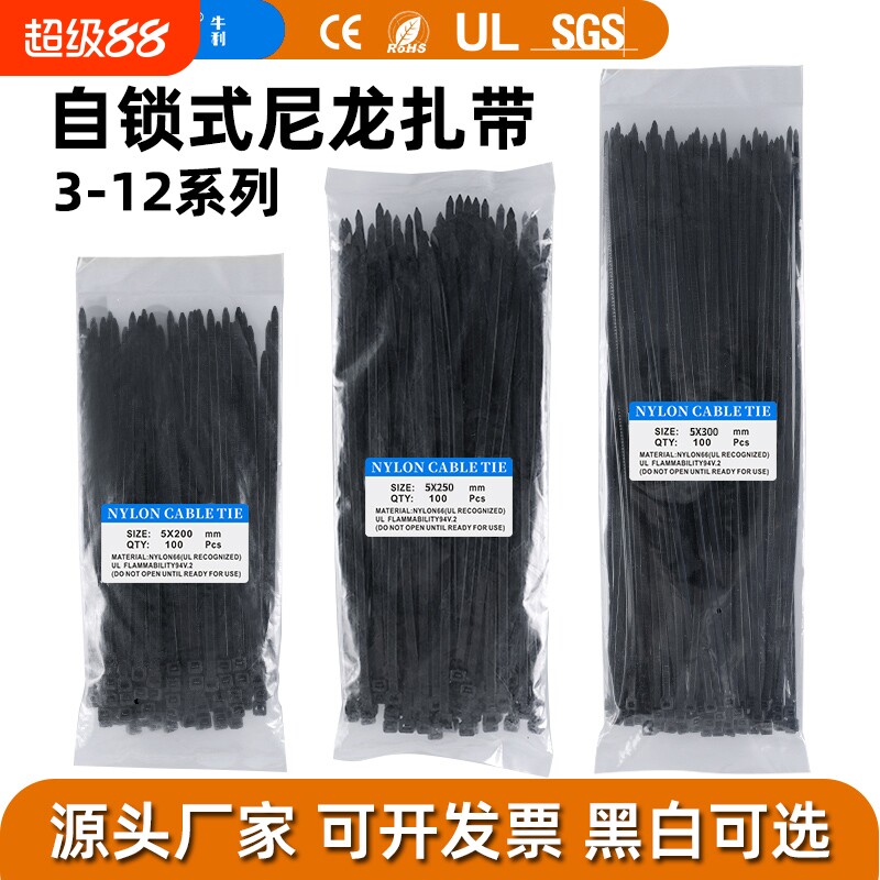 尼龙扎带3*4*5*8*10*12系列多规格塑料扎带绑扎带100条装厂家直销