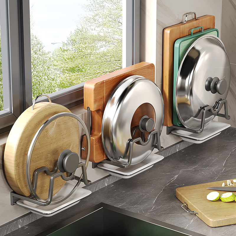 炒菜锅盖架壁挂免打孔神器放锅盖的架子厨房置物架菜板砧板放置器