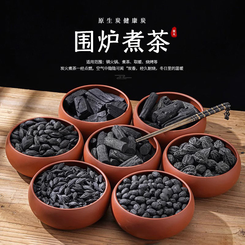 围炉煮茶碳龙眼炭无烟核桃橄榄碳烤炉家用室内速燃果木炭烧烤碳块