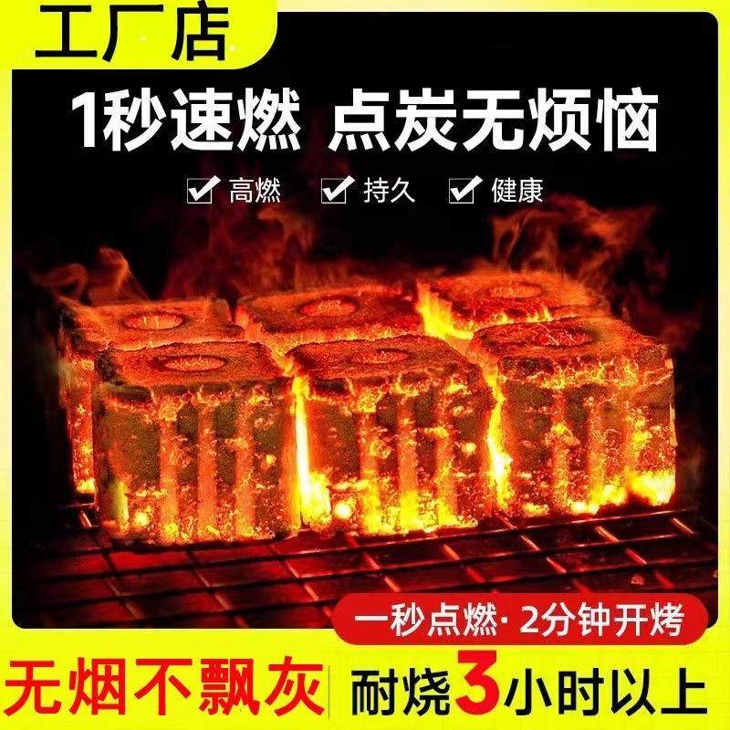 速燃炭烧烤炭无烟果木炭专用易燃碳家用炭块机制竹炭煮茶户外木炭