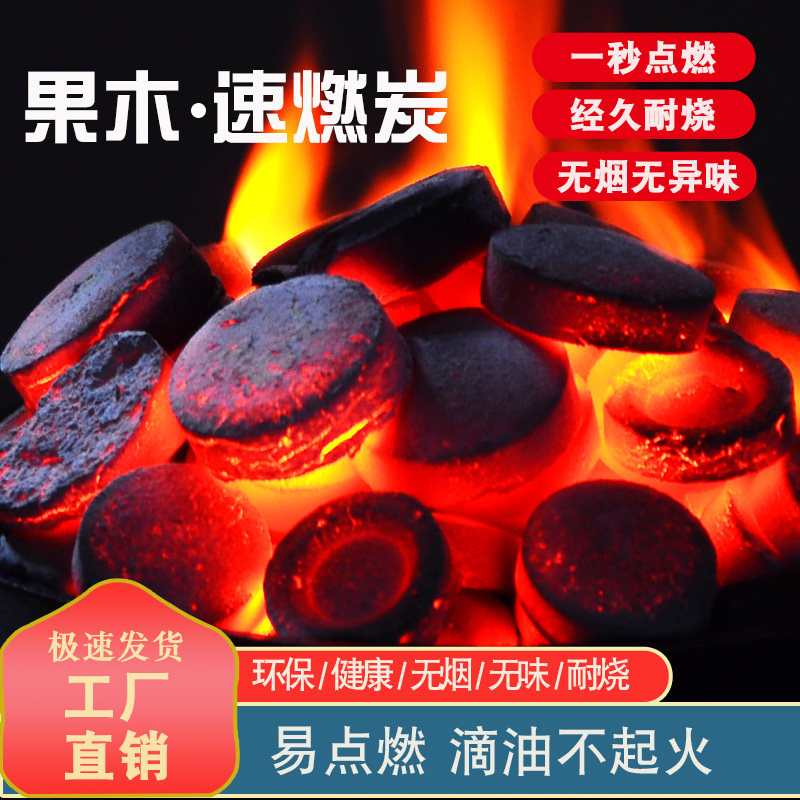 速燃碳果木炭引燃炭户外烧烤碳无烟碳水烟炭暖手炉煮茶炭点碳神器