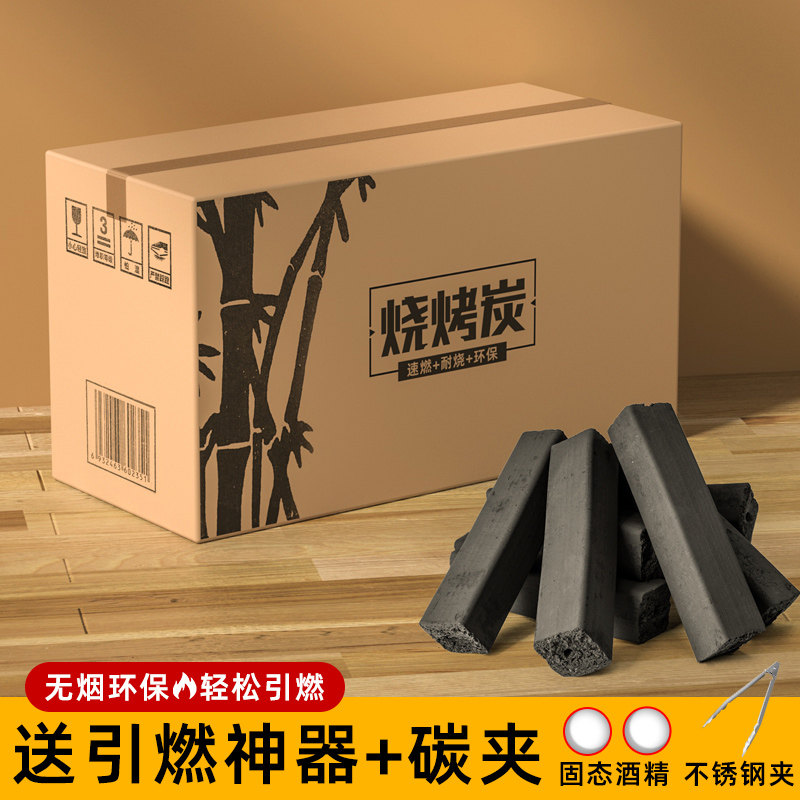 烧烤碳家用速燃果木炭机制竹炭块批发钢碳专用室内无烟碳烤火取暖