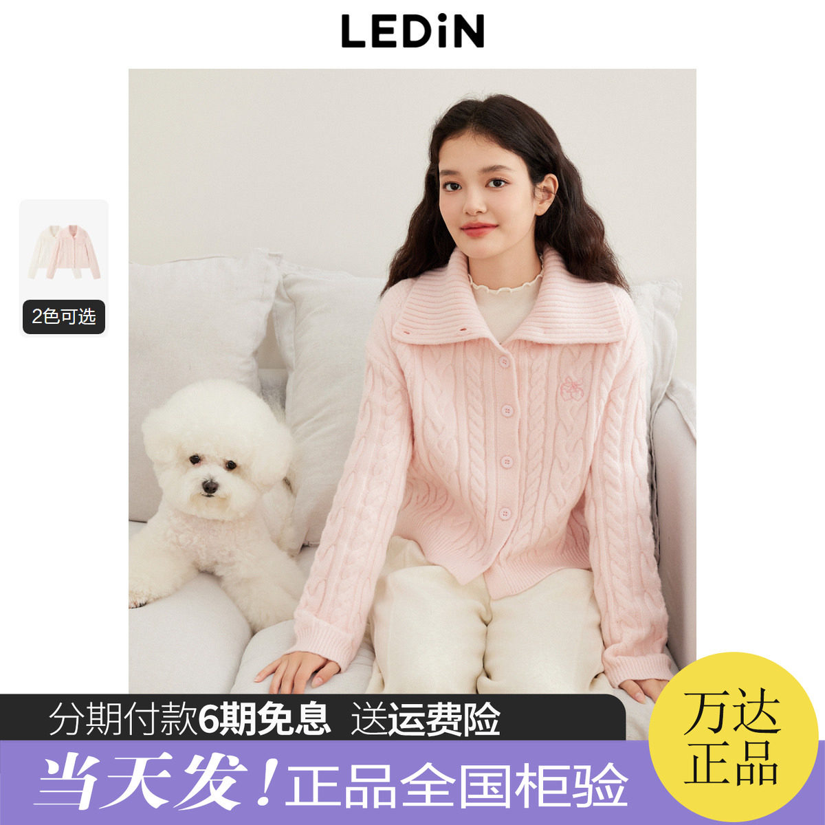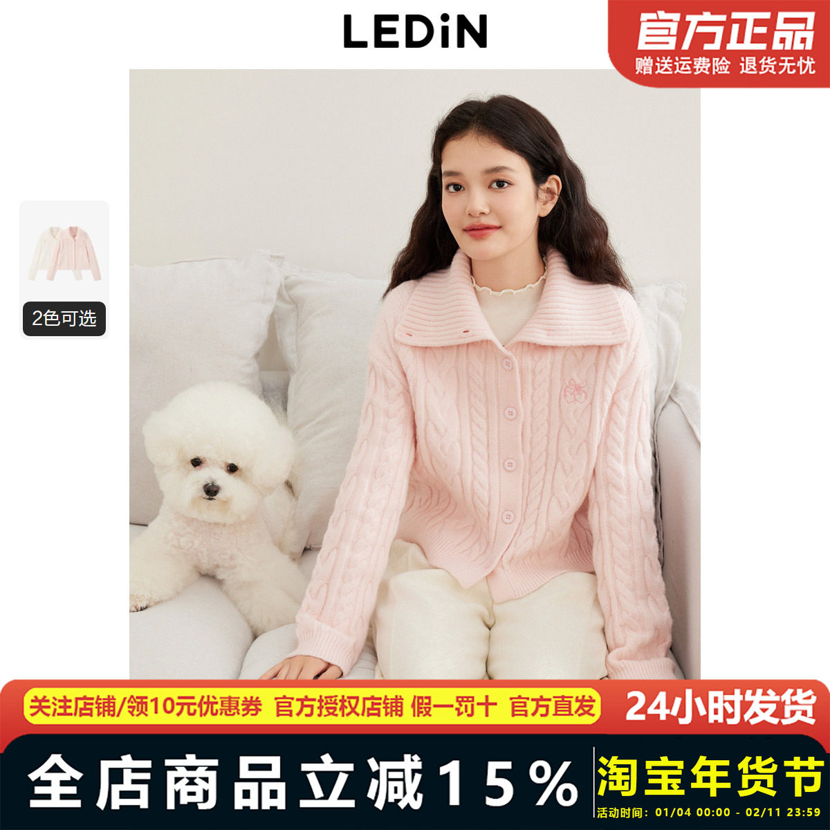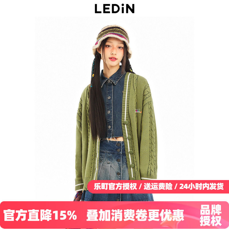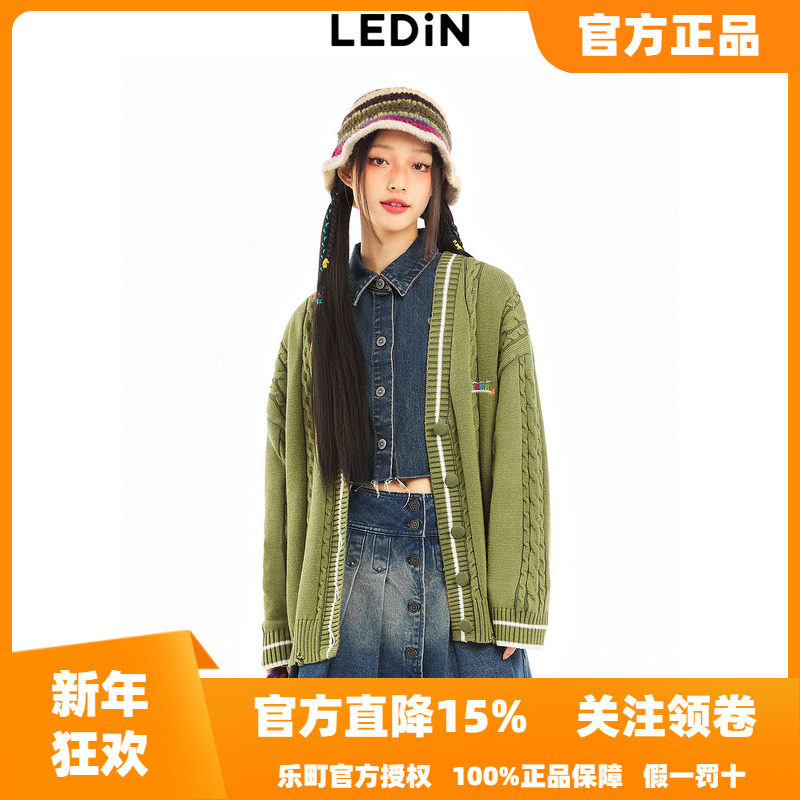 【反季清仓】乐町水洗V领绞花开衫秋冬柔软针织外套C2EDD4155
