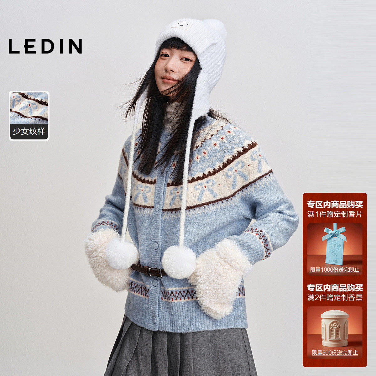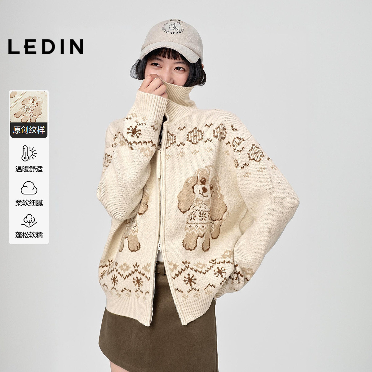 【商场同款】乐町小狗费尔岛翻领开衫秋冬新款毛衣外套C2EDF4354