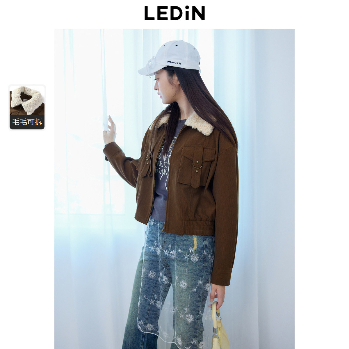【商场同款】乐町女装秋冬季新款休闲复古夹克外套时尚毛领小外套