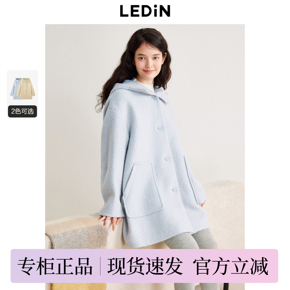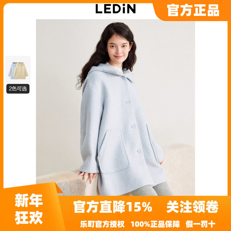 【反季清仓】乐町韩通勤连帽落肩设计小个子大衣秋冬A字毛呢外套