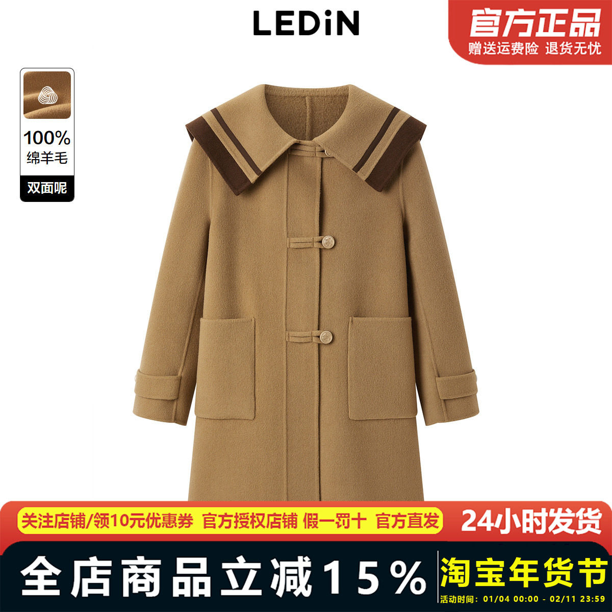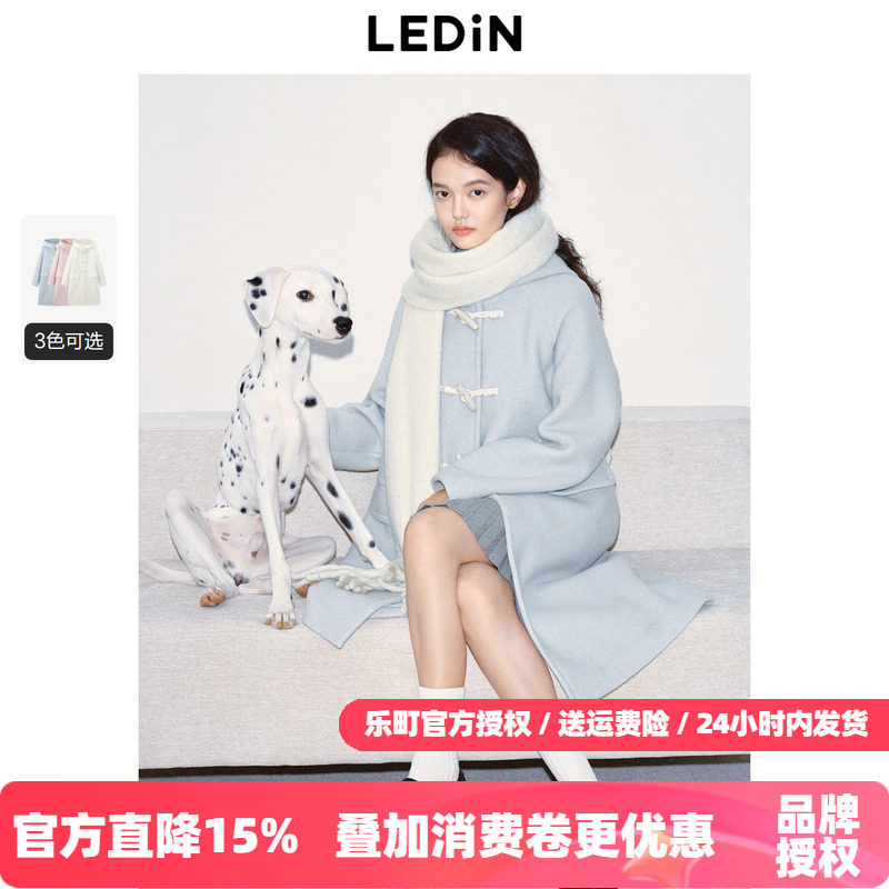 乐町2025冬季新款学院风毛呢大衣秋冬牛角扣中长款外套C1AAD4228