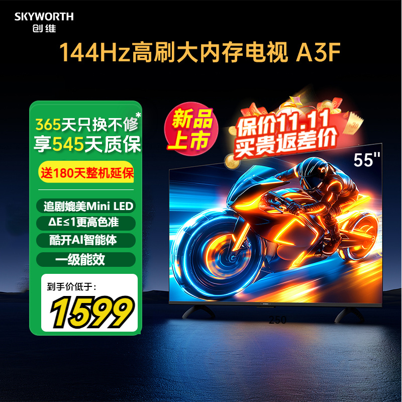 创维电视55A3F 55英寸 144Hz高刷 AI电视机液晶家用 以旧换新补贴
