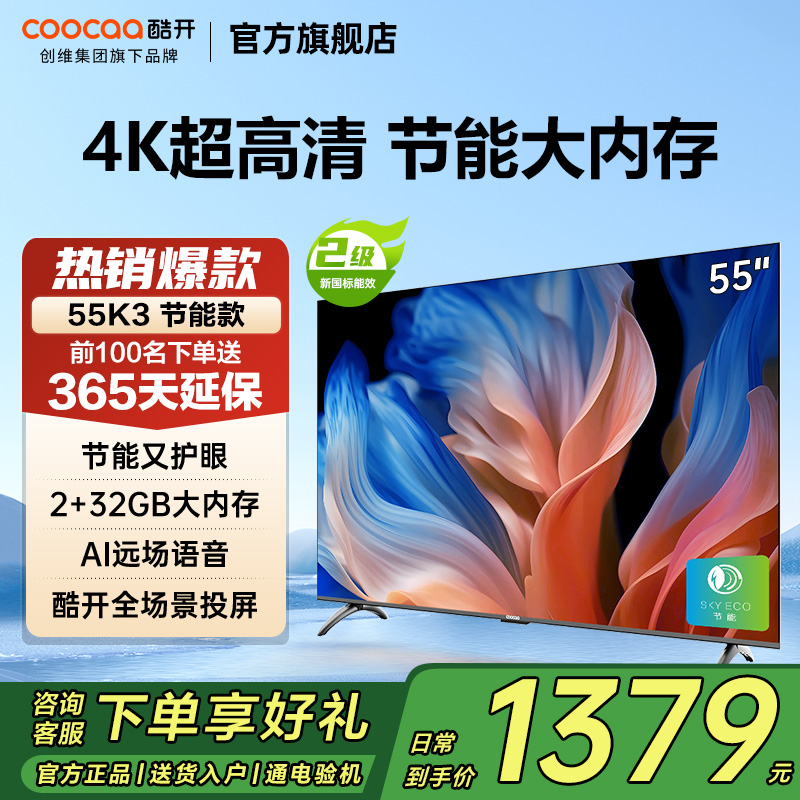 创维酷开K3 55英寸节能款4K高清液晶2025新款家用电视机以旧换新