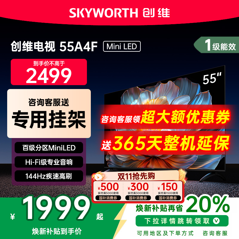 【换新补贴20%】创维A4F 55英寸Mini LED电视机官方液晶平板 122