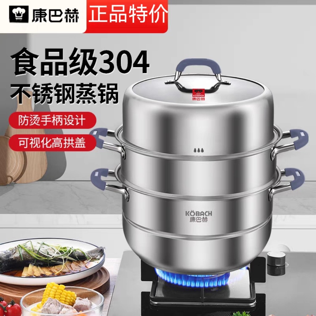 特价正品康巴赫不锈钢蒸锅家用加厚三层蒸笼蒸鱼馒头电磁炉煤气灶