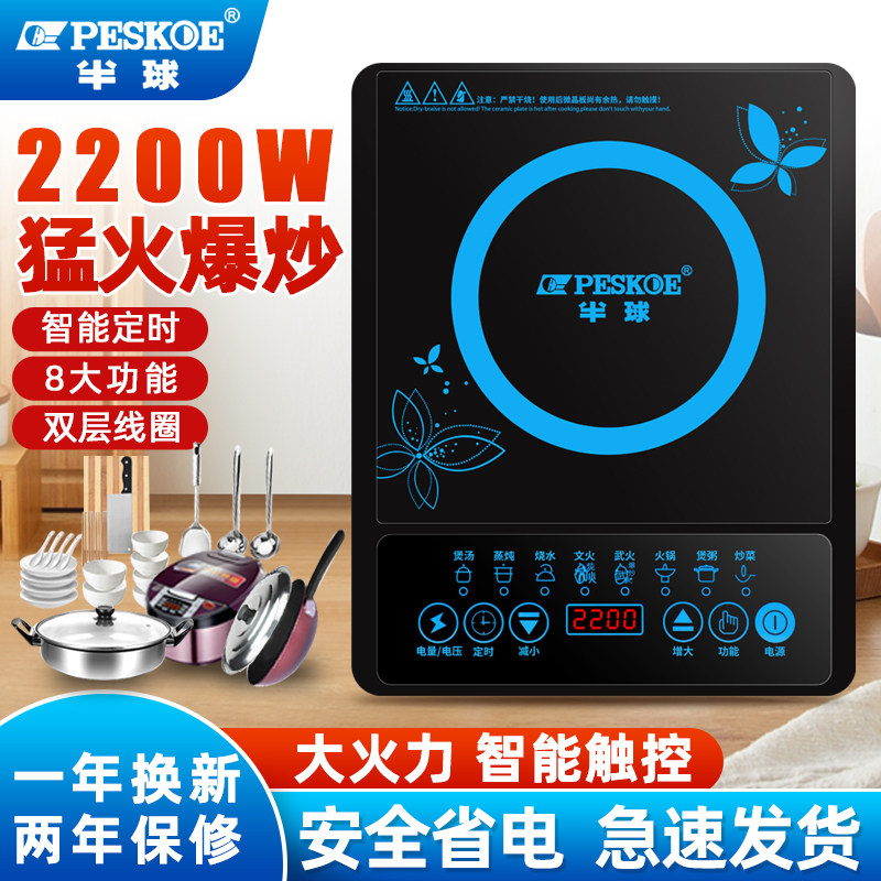 正品半球电磁炉家用2200W大功率触摸式宿舍节能爆炒火锅炉灶全套