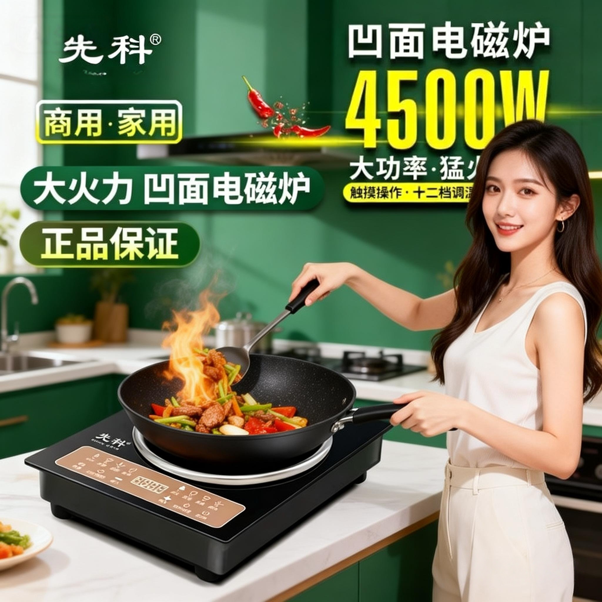 先科电磁炉家用大功率商用4500w智能特价新款爆炒正品凹面猛火灶