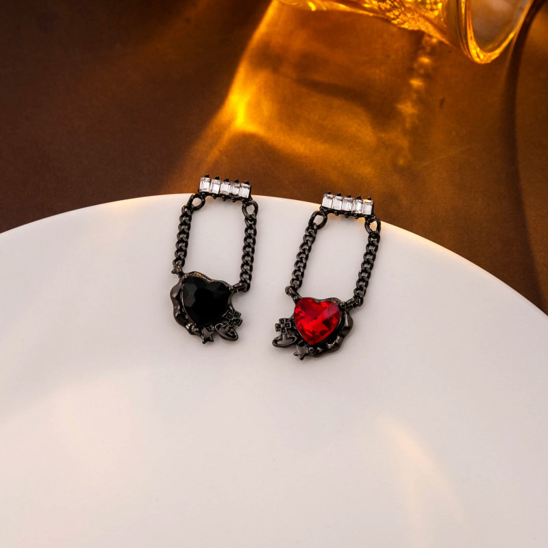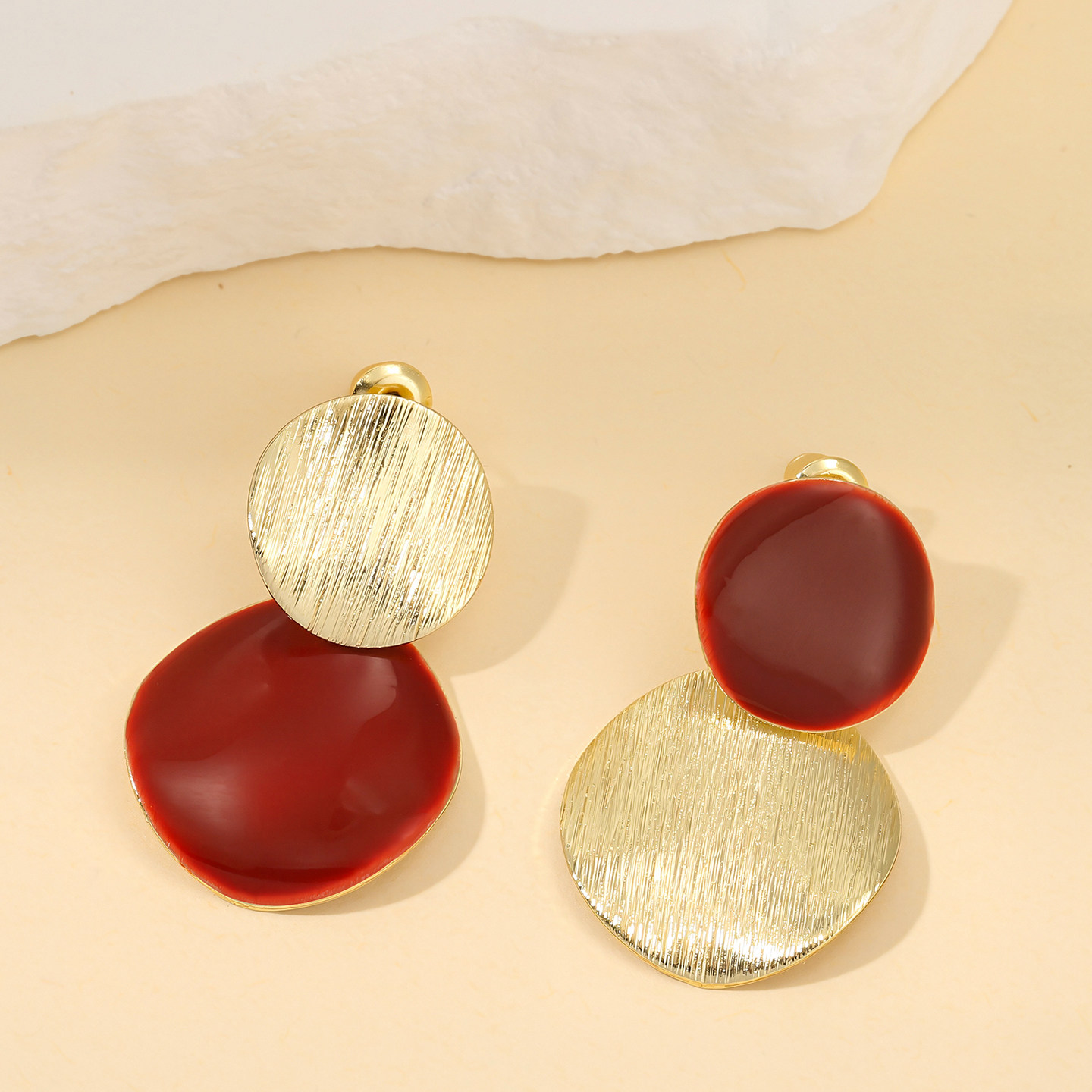 安可拉红耳环女秋冬氛围感气质耳坠拉丝不对称复古港风红色圆耳饰