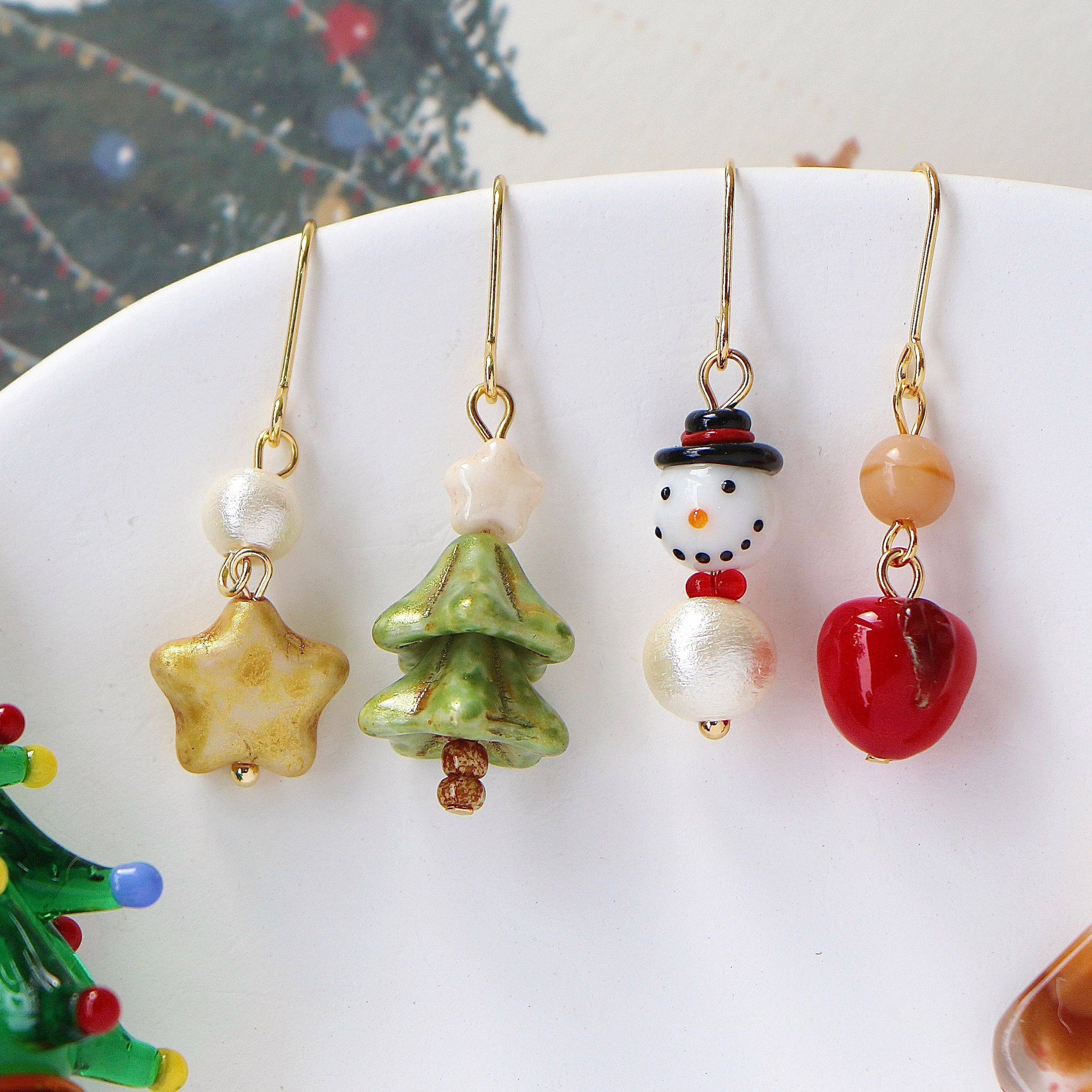 莉夏原创星星耳环捷克珠圣诞树耳饰冬季个性不对称耳坠气质女耳夹