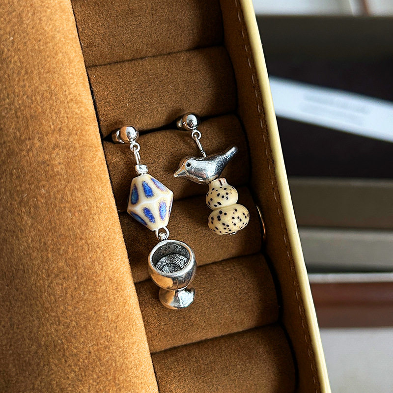 925耳针美拉德陶瓷小鸟杯子葫芦果实不对称耳坠创意复古古着文艺