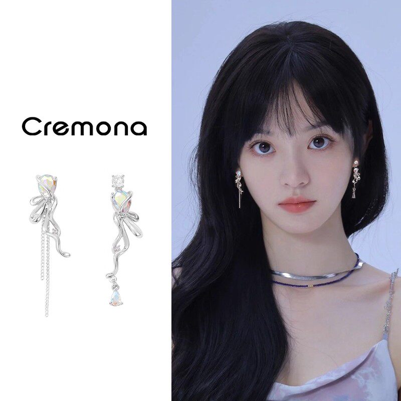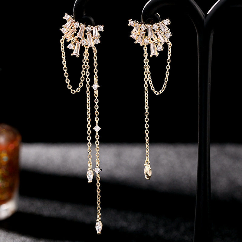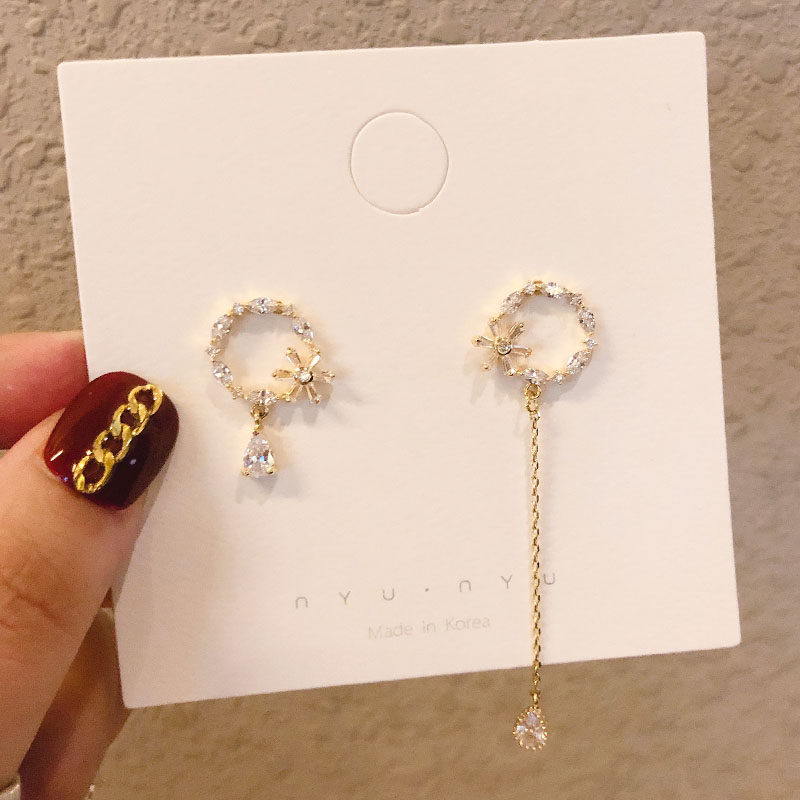 日韩精致时尚轻奢锆石星球月亮不对称耳坠个性精致长款流苏耳环女