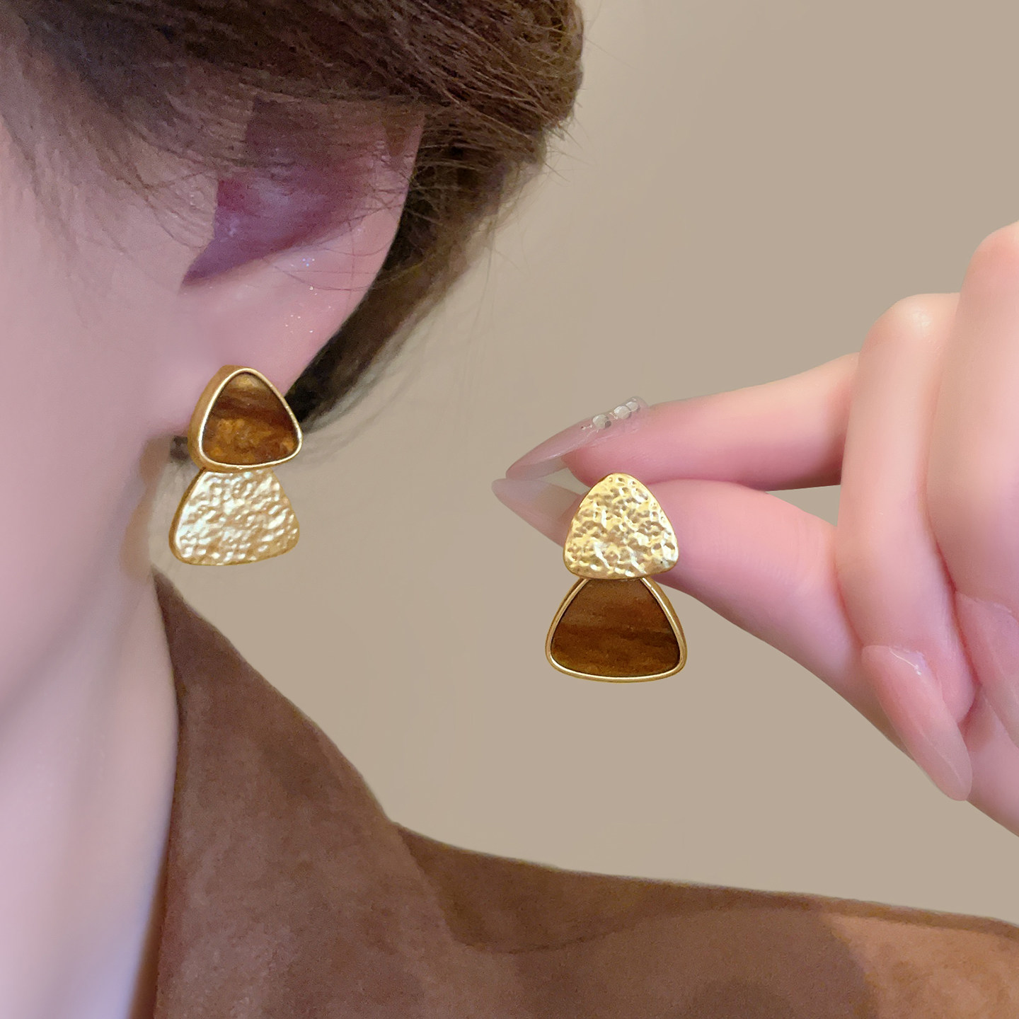 韩系三角几何耳钉金色耳饰女耳环2025新款爆款高级感不对称耳坠潮