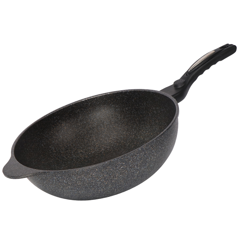 微压麦饭石锅不粘锅炒锅家用炒菜锅正品燃气灶适用平底不沾麦石锅