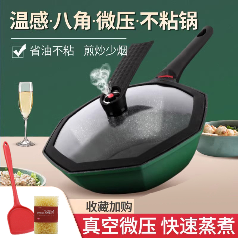 八角锅麦饭石锅不粘锅炒锅家用微压锅炒菜锅不沾燃气灶专用电磁炉