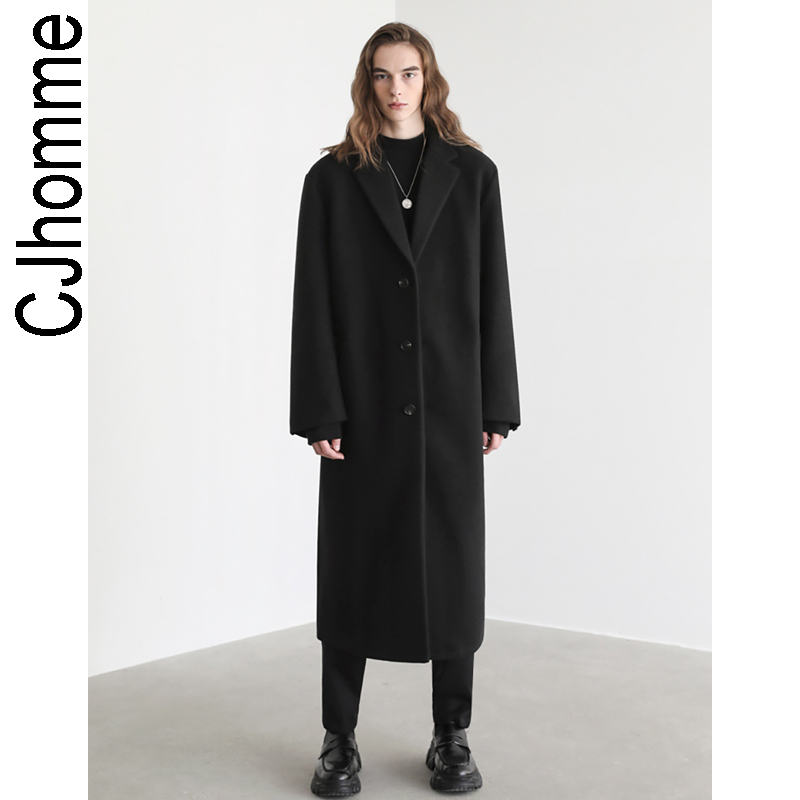 CJHOMME 冬季男士保暖长款过膝宽松大码休闲毛呢大衣男韩版时尚潮