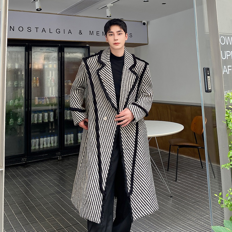 【香港·都市雅集】秋冬加厚超长款过膝毛呢大衣男韩版加长款风衣