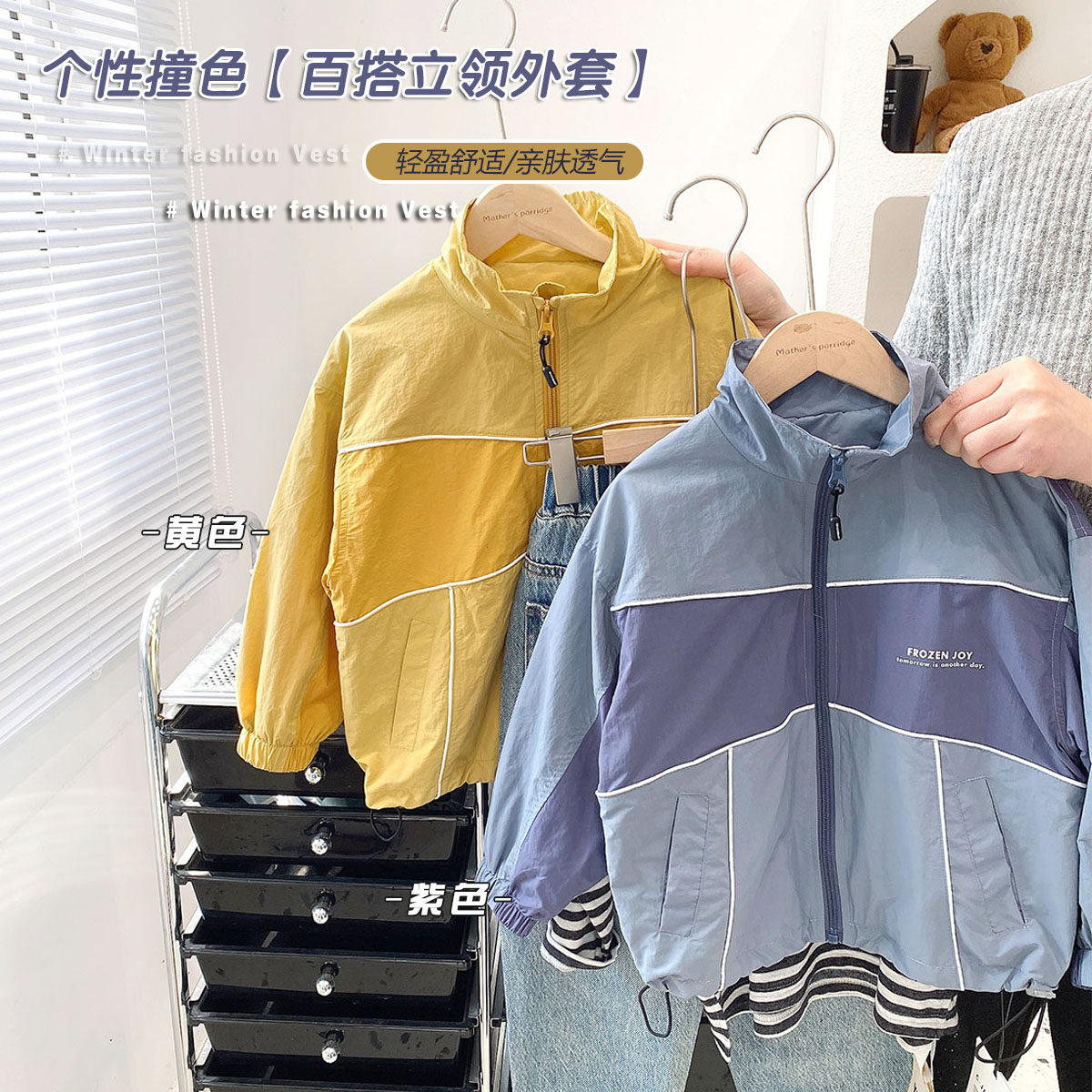2026年春夏童装儿童立领风衣中童拼色薄外套男童夹克衫韩版上衣潮