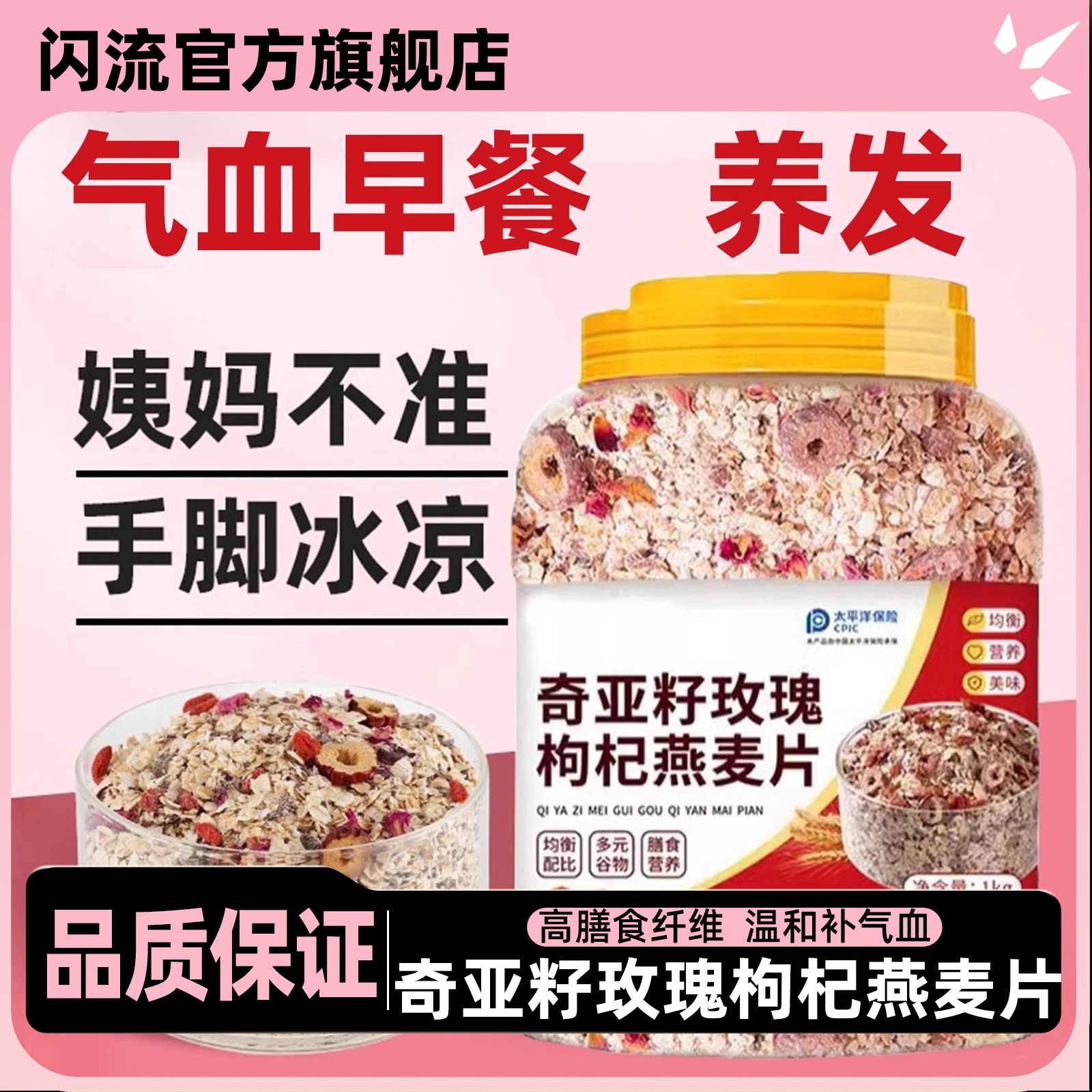 燕麦片早餐即食冲饮旗舰店奇亚籽玫瑰枸杞女士补气血无糖低脂麦片