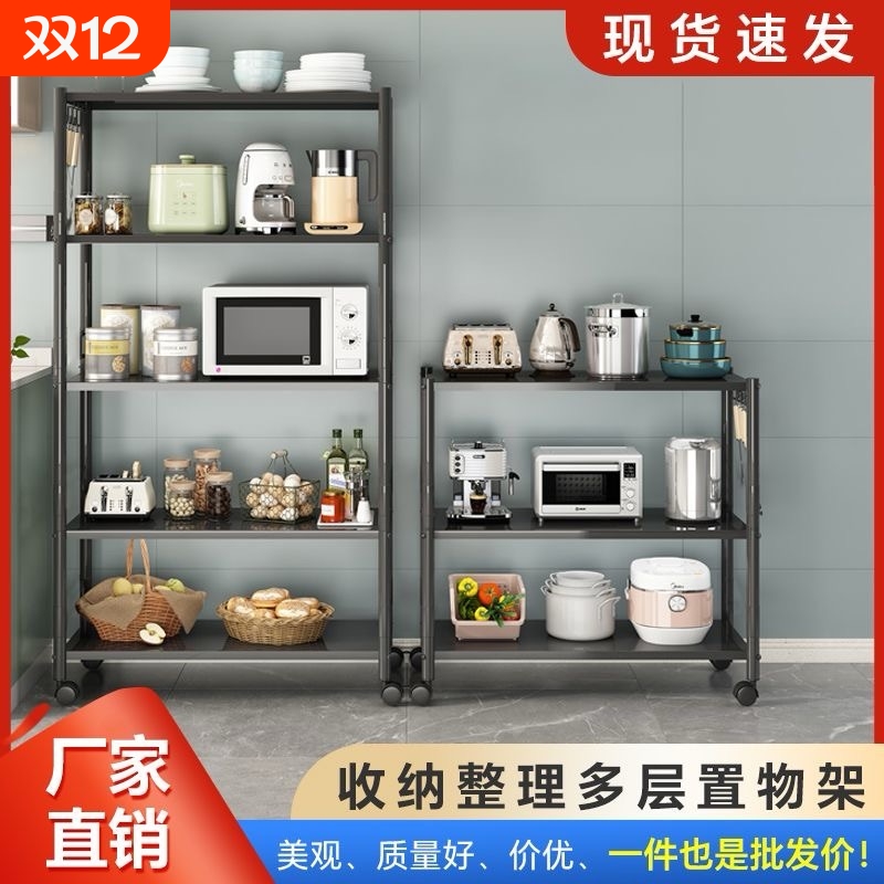 双层落地不锈钢置物架厨房收纳厨具架子两层微波炉2层家用二层柜