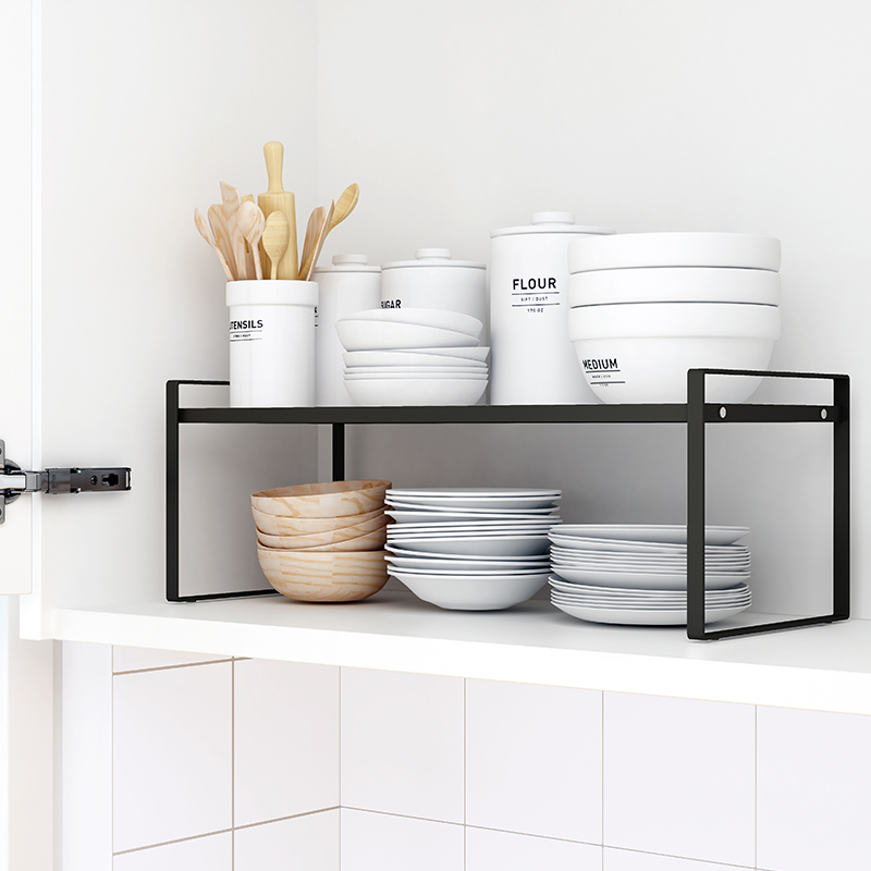 橱柜分层置物架桌面隔板内台面黑色D单层架水槽靠墙窄收纳厨房用