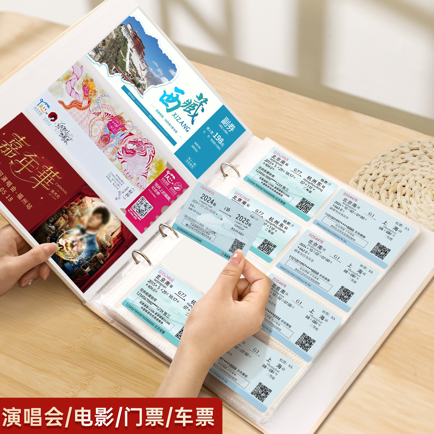 票据收集册高铁票火车票飞机票票夹本电影票演唱会门票收藏册票根收纳旅游纪念相册录拍立得照片旅行收纳册套