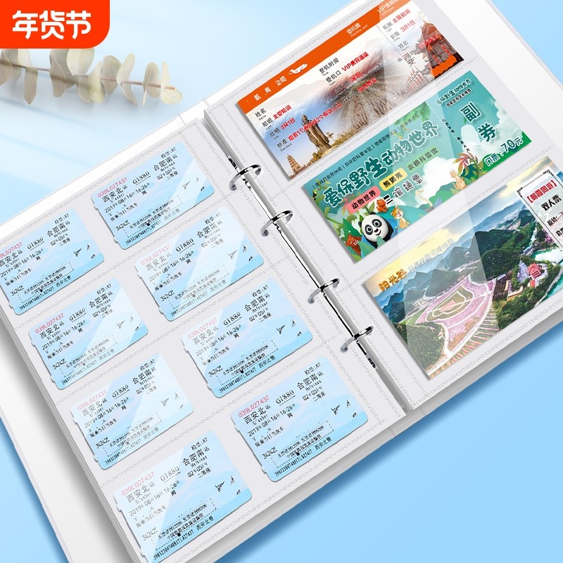 聚册票据收纳册A4家用火车票机票门票票夹收纳本票据收集册旅行纪念册收藏册演唱会门票高铁票明信片话剧票根