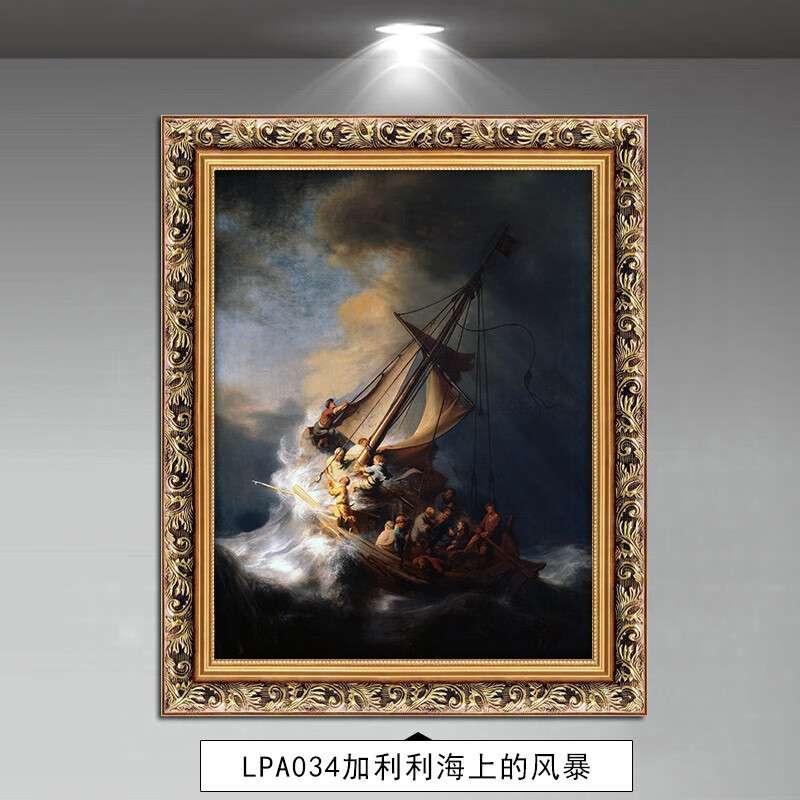 林格印象伦勃朗挂画欧式古典油画复古客厅夜巡海上风暴人物装饰画