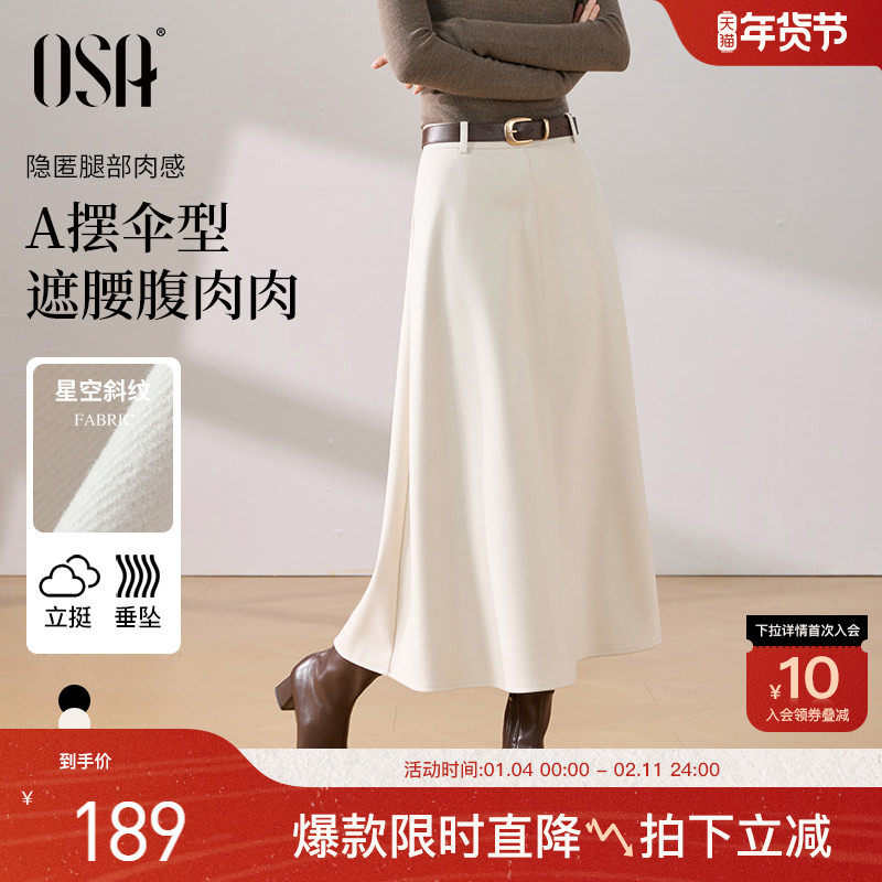 【杏仁半身裙】OSA欧莎气质通勤a字伞裙女2025冬新款显瘦中长款裙
