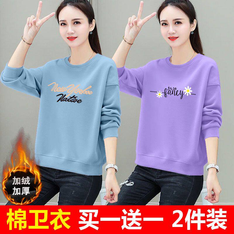 卫衣女春秋冬季韩版加绒加厚套头纯棉宽松显瘦学生圆领ins上衣潮