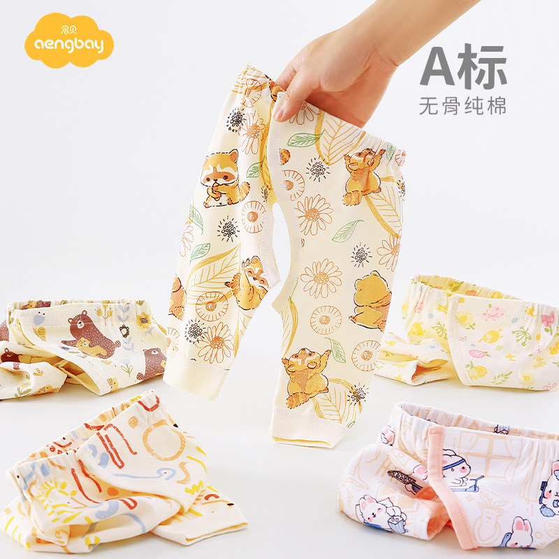Aengbay新生儿裤子春秋款a类纯棉长裤魔术贴婴幼儿秋裤宝宝开裆裤