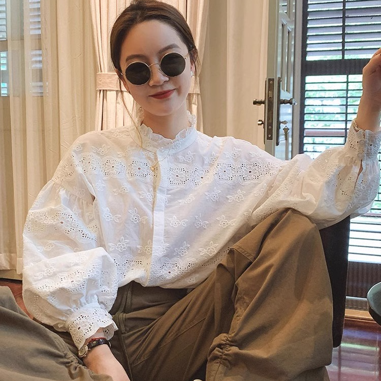 - 长袖衬衫女 韩版 宽松 灯笼袖