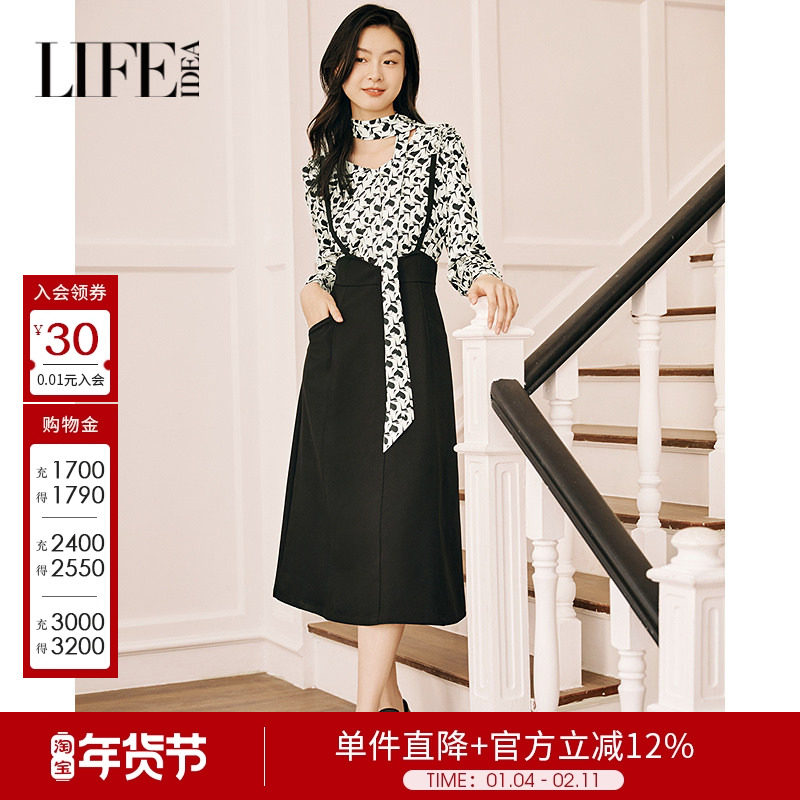 莱芙艾迪儿气质百搭25年秋冬黑色经典休闲出游通勤背带裙半身裙女