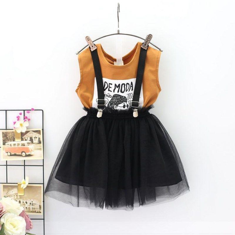 女宝宝夏季新款网纱裙套装2024女童韩版背心上衣百搭背带裙两件套