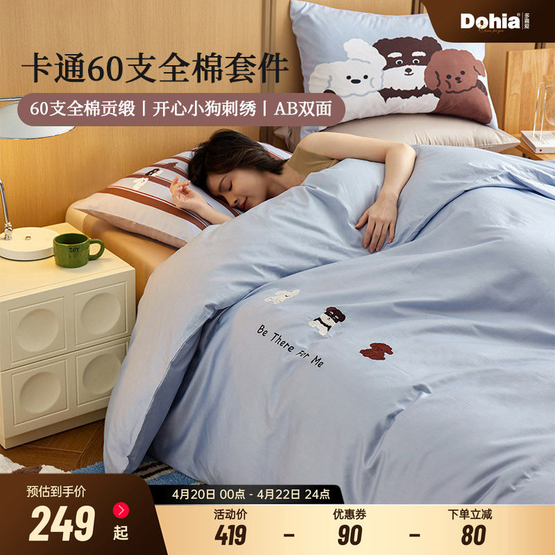 多喜爱60支全棉卡通三/四件套儿童卧室纯棉床单被套学生宿舍床品