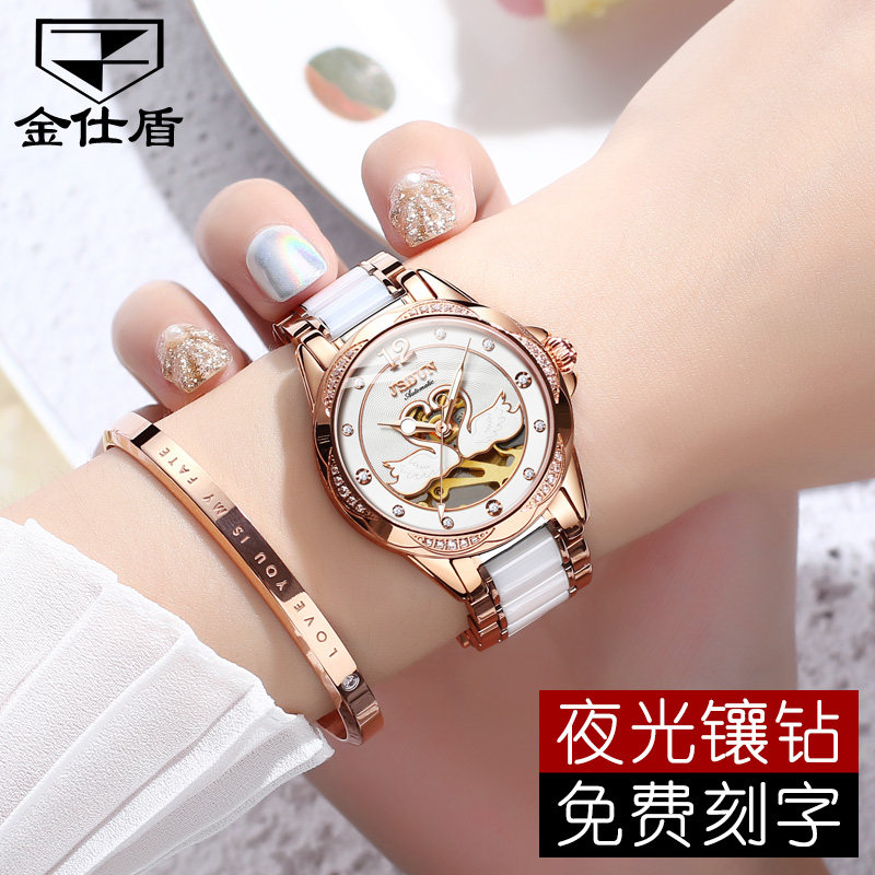 瑞士金仕盾正品牌轻奢小众手表女2025新款机械表女款夜光防水女式